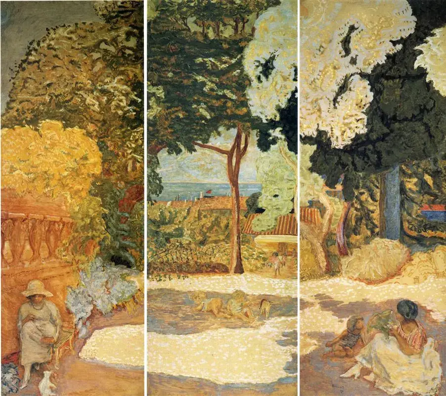 La Terrasse was painted in 1912 when Bonnard was in his mid-forties prime and a year after he exhibited his huge (407 x 456 cm) triptych Méditerranée in the Salon d'Automne, another painting set in the south.